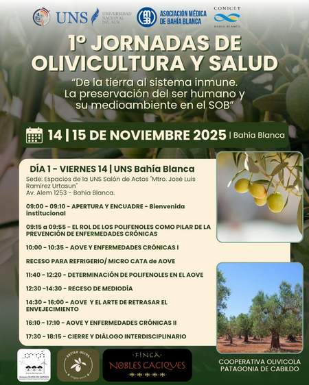 Desde el Departamento de Ciencias de la Salud de la Universidad Nacional del Sur lo invitamos a las 1º JORNADAS DE OLIVICULTURA Y SALUD “De la tierra al sistema inmune. La preservación del ser humano y su medioambiente en el SOB” a realizarse los días 14 y 15 de noviembre de 2025.
