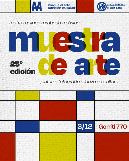Vuelve la Muestra Anual de Arte de la Asociación Médica, celebrando la 25° Edición. Este año, se realizará del 1 al 5 de diciembre, como ya es costumbre en el Auditorio de la AMBB, Gorriti 770. La inauguración se realizará el 3 de diciembre.